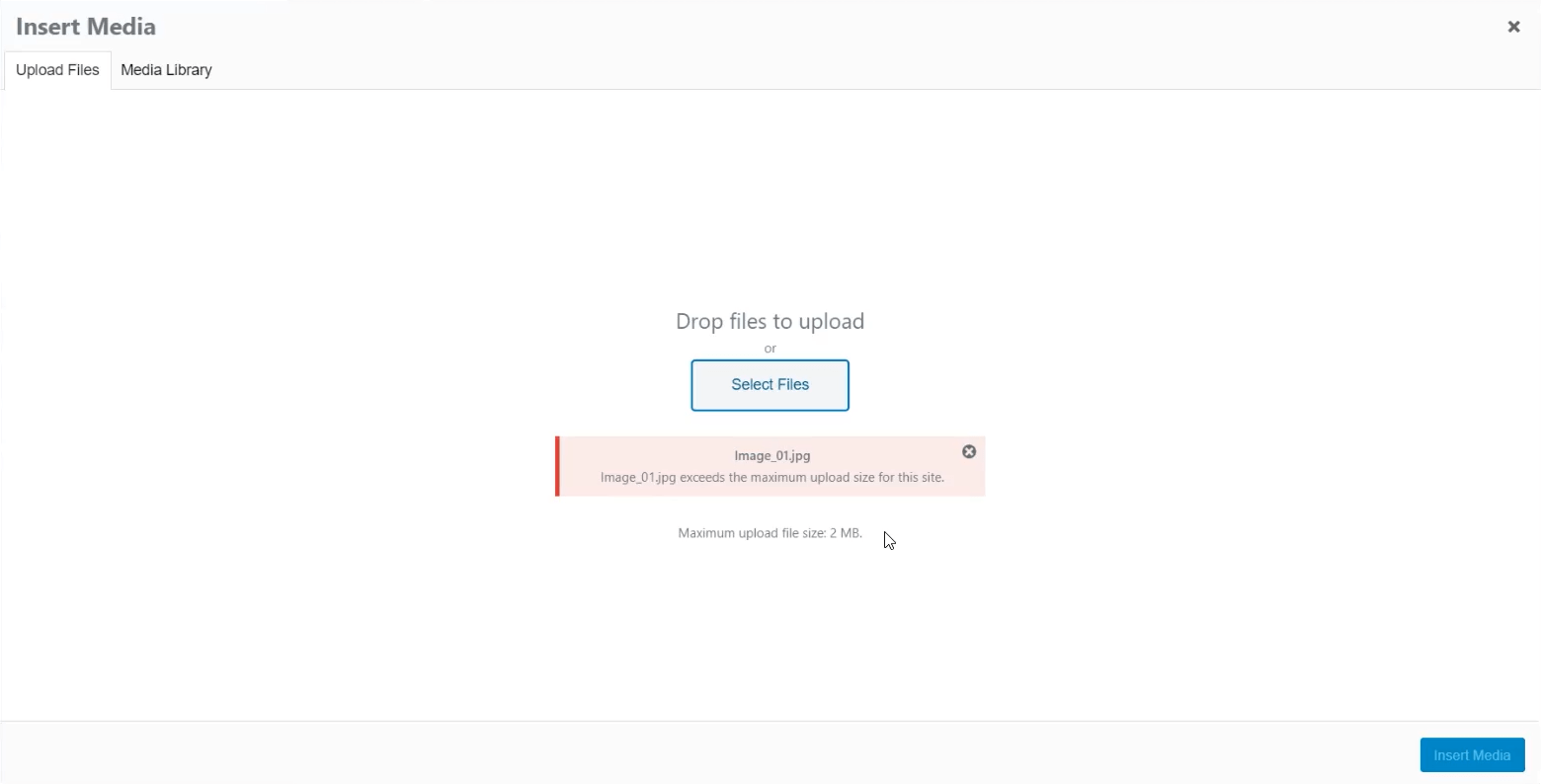 అయితే, మనకి ఈ ఎర్రర్ ఎందుకు వస్తుంది అంటే, మన హాస్టింగ్ సర్వీస్ ప్రొవైడర్ మనకి ఇచ్చిన cPanel లో ఉపాలవుడ్ లిమిట్ అనేది సెట్ చేసి ఇస్తారు. కాబట్టి మనం వాలు సెట్ చేసిన సైజ్ కన్నా ఎక్కువ సైజ్ ఉన్న ఇమేజ్, వీడియో లేదా PDF ని మనం మన మీడియా లైబ్రరీ లోకి అప్లోడ్ చెయ్యలేం.
